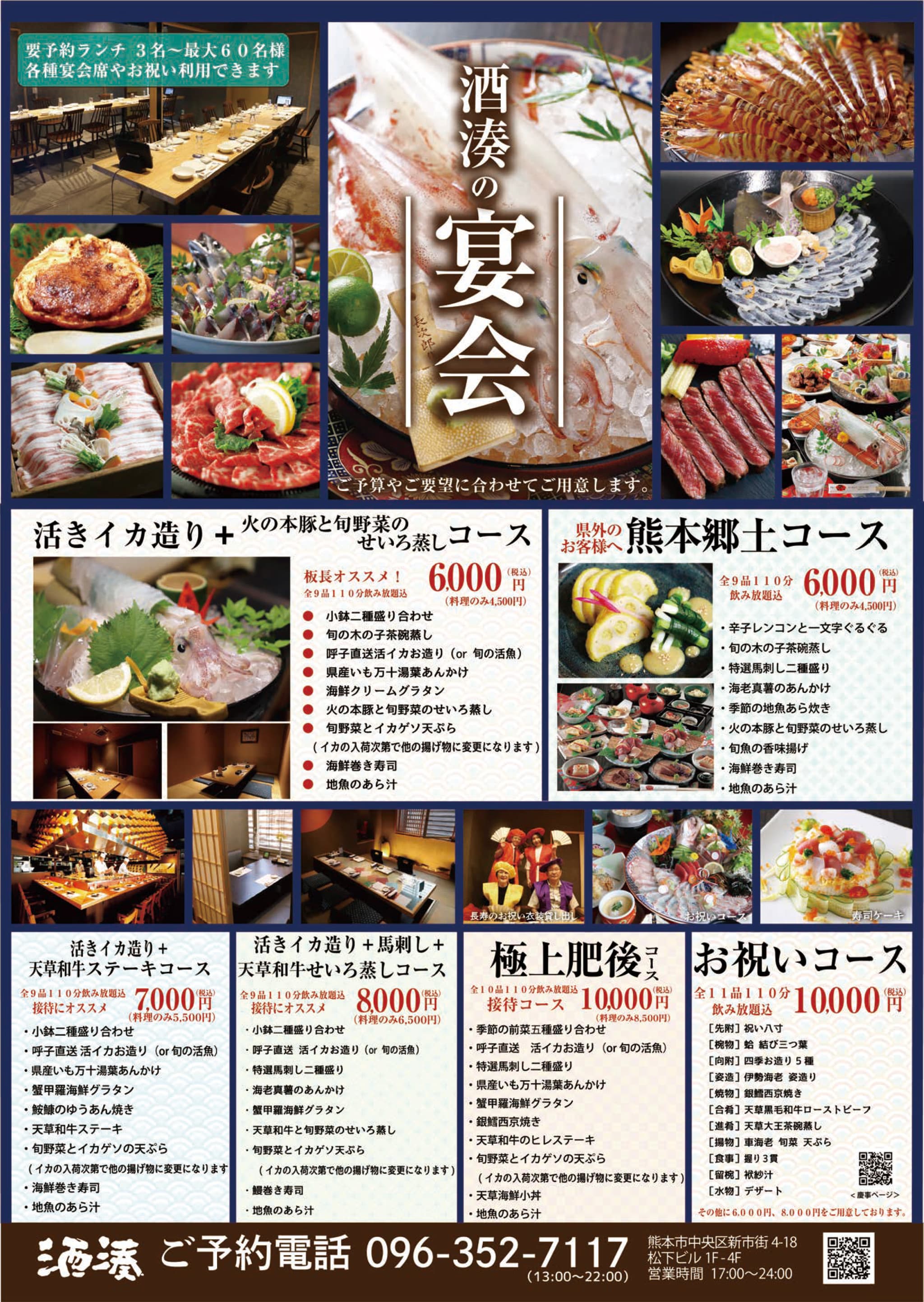 TEL 096-352-7117 住所 熊本県熊本市中央区新市街4-18 酒湊ビル1-4F 営業時間 定休日 不定休 席数 233席 宴会最大人数 70名 飲食情報サイト