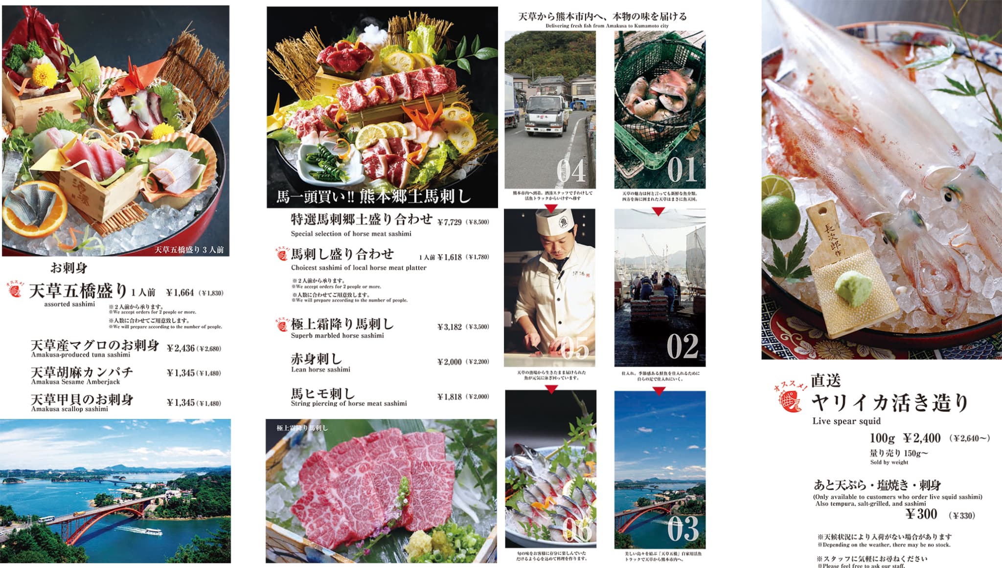 熊本名物グルメの「馬刺し」や天草直送の鮮度抜群の「お刺身」がご賞味いただけます